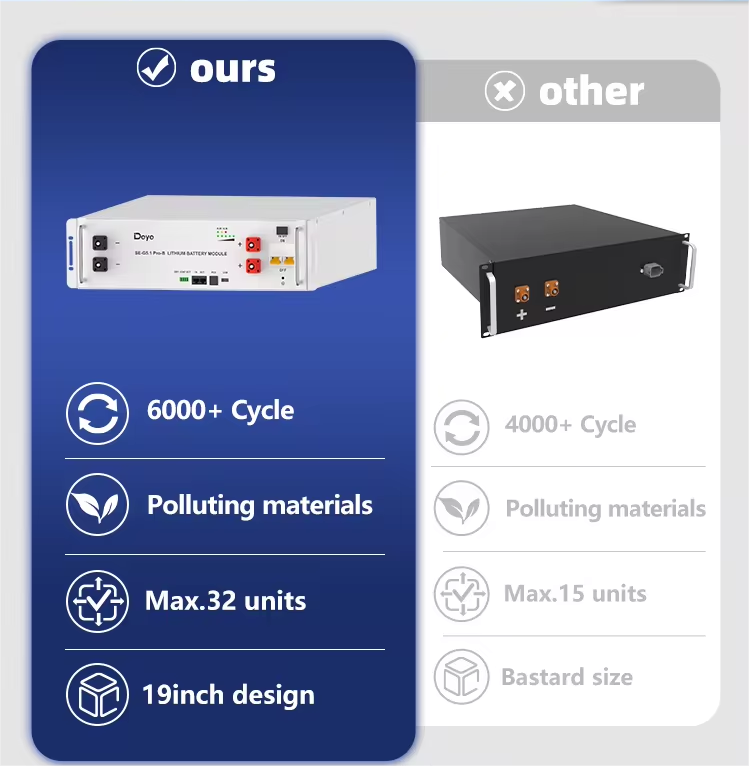 The Deye SE-G5.1 Pro-B is a cutting-edge lithium iron phosphate (LFP) battery designed for safe, reliable, and flexible energy storage solutions. This modular battery system is perfect for both residential and commercial applications, allowing you to increase your self- consumption ratio and optimize your energy usage.